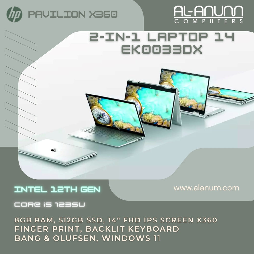 HP Pavilion X360-14-ek0033dx,Ci5 12TH, 8Gb, 512GB SSD, 14" FHD IPS Touch, FPR, BL-K, B&O, W11, Silver